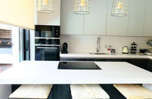Spectacular brand new semi-detached house in one of the best residential areas of Madrid (Puerta de Hierro). It has 5 bedrooms with ensuite bathrooms, 2 toilets, individual swimming pool, barbecue, laundry room and 2 parking spaces with direct access to the house. The property is distributed over 4 floors and has an internal lift. The property is fully equipped and decorated with high quality furniture and has large windows throughout the house, which give great luminosity.
