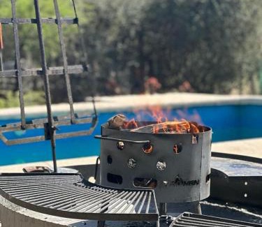 Food & DrinkTea/Coffee makerBathroomPrivate Bathroom, Spa tub, Bathtub or shower, Shower, Guest bathroom, Bidet, Bathtub, Toilet paper, Free toiletries, ToiletMedia & TechnologyStreaming service (like Netflix), TV, Flat-screen TVGeneralHeating, Tile/Marble floor, Fan, Mosquito net, Air conditioning, Private entranceActivitiesHot tubKitchenRefrigerator, Cleaning products, Electric kettle, Kitchen, Microwave, Kitchenware, Oven, Kitchenette, Dining tableLiving AreaDining area, Sofa, Sitting areaOutdoorsBarbecue, Patio, Private pool, Outdoor furnitureBedroomExtra long beds (> 6.5 ft), Wardrobe or closet, LinensViewMountain view, Garden view, ViewAccessibilityUpper floors accessible by stairs onlyBuilding CharacteristicsDetachedRoom AmenitiesSocket near the bedCleanliness & disinfectionHand sanitizer |