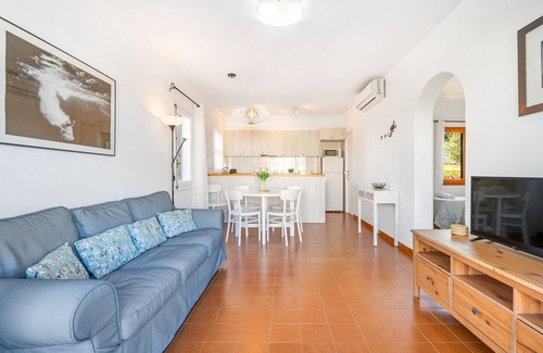 Cozy apartment just a 5 minute walk from the Arenal de'n Castell beach. The apartment is located in a community with a shared garden and pool. Very quiet residential area with a family atmosphere. About 200 meters away there are bars, restaurants, supermarkets and a shopping area. There is also a pharmacy, car rental... ideal for a family vacation.