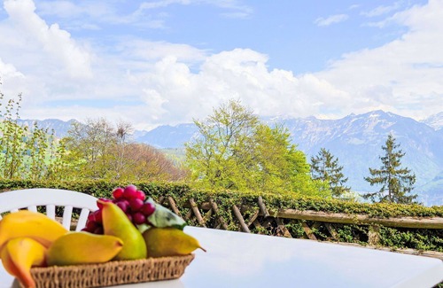 The apartment includes a bath/WC, electric heating (although not available in all rooms), a large south-facing patio with terrace furniture and deck chairs, offering a marvelous panoramic view of the lake and mountains. Additional amenities include a children's high chair, a baby cot for up to 2-year-olds (extra charge), a hair dryer, internet (WiFi, free), and parking facilities. It also provides a fondue set (cheese) and Nespresso capsules for the coffee machine (extra charge).
