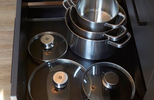 The kitchen is equipped with an oven, a stovetop, and a refrigerator, as well as a microwave. And because there's a washer and dryer, you can go a bit lighter on your packing. Other amenities include a living room, bed sheets, and heating.