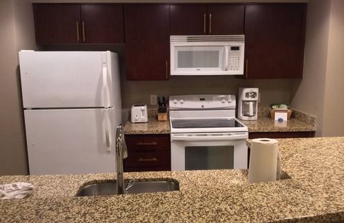 The condo available for rent is a 2 bedroom - 2 bath furnished condo. The condo comes with a fully equipped kitchen with a stove, oven, microwave, refrigerator, dishwasher, cookware, and dishes. The 2 bedroom deluxe condo has a king size bed in the master bedroom, second bedroom has (2) twins and there is a Murphy bed in the living room.