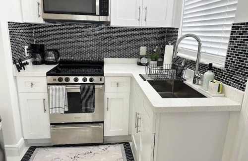 Krystaldream is a newly renovated 1 bedroom/1 bathroom apartment that accommodates 2 adults comfortably with a private entrance and parking space with direct access to the unit (no stairs). This unit boasts a fully equipped kitchenette (Microwave, Stove, Oven, Refrigerator, Coffee Maker, Plates, Saucers, Mugs, Glasses, Utensils, Silverware, etc.). The bedroom is furnished with a Queen size bed. Additional features include a smart rv, walk-in shower, and a high-efficiency dual flush toilet! New, strong air conditioning that cools the space perfectly, an exceptional getaway. This is a completely private apartment attached to two other units. You’ll have all the space to yourself.