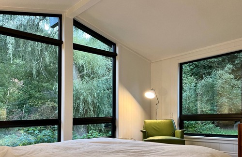 This newly renovated home on the Noisy River is the perfect place to unwind and watch the river pass by. The river surrounds the house and can be seen from the open concept living area and the main bedroom. The main bedroom has a 2 piece bathroom. We have a woodstove in the livingroom and sliding glass doors out to the deck area. Enjoy sitting at the generous island while making dinner. Minutes to the sweet village of Creemore and 20 minutes to Collingwood. Flowers, birds and privacy.