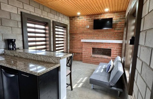 This 2 Bedrooms Cabin provides accommodation with Air Conditioner, Designated Smoking Area, Fireplace/Heating, for your convenience. This Cabin features many amenities for guests who want to stay for a few days, a weekend or probably a longer vacation with family, friends or group. This Cabin is less than 7 km from Ensenada, and gives visitors the opportunity to explore it. The rental Cabin has 2 Bedrooms and 2 Bathrooms to make you feel right at home.