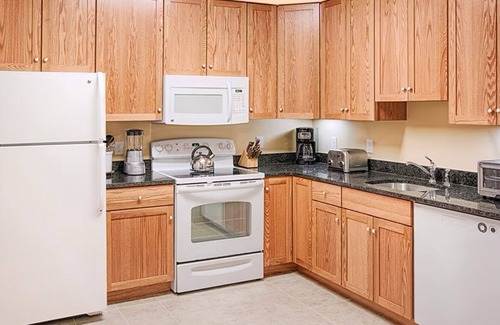 The spacious (1200 sq ft) 2-Bedroom 2 Bath suite comfortably accommodates 8 guests with 1-King, 1-Queen, 2-Twin beds and 1-Sleep sofa. There’s a full kitchen with a refrigerator, stove/oven, dishwasher, microwave, coffee maker, toaster, blender, cooking utensils, flatware, glassware, paper products, dishwashing liquid, dishwasher detergent, laundry detergent and some travel size personal care products. Also, for your convenience there’s a washer/dryer in the suite. For your enjoyment the suite has a fireplace, balcony/patio, Wi-Fi, television and DVD player. Most suites have hairdryers and stereo; some even have, a jetted tub, stairs, ceiling fans, and in-room safe.