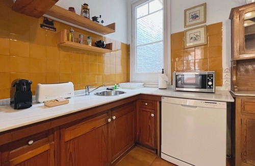 This 2-bedroom, 1-bathroom rental features a living room, a dining area, air conditioning, and a desk. Enjoy the free WiFi and TV. The kitchen is equipped with an oven, a refrigerator, and a dishwasher, as well as an electric kettle, a microwave, and cookware. And there's a dryer, so you can even pack a bit lighter. Other amenities include bed sheets, an ironing board, and heating.
