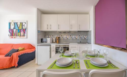 A 3-minute walk from Morro Jable Beach in Morro del Jable, terrazza e vista oceano, Wi-Fi, aria condizionata, 6º piano offers accommodations with access to an open-air bath. This beachfront property offers access to a balcony, a pool table, and free Wifi. The apartment provides a pool with city views, solarium, and an elevator. Providing a terrace and sea views, the apartment includes 1 bedroom, a living room, satellite flat-screen TV, an equipped kitchen, and 1 bathroom with a walk-in shower and a bidet. Towels and bed linen are provided in the apartment. The property has an outdoor dining area. Jandia Golf is 2.5 miles from the apartment. Fuerteventura Airport is 48 miles away.