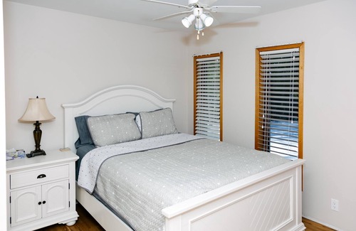 With up to 8 guests accommodated comfortably in 5 bedrooms and 3 bathrooms, there's ample space for everyone to relax and rejuvenate. Outside, discover your private oasis, complete with a beautiful backyard and firepit, perfect for roasting marshmallows under the starlit sky. Embrace the serenity of nature as you bask in the beauty of the surrounding landscape, with towering trees providing a canopy of privacy and peace.