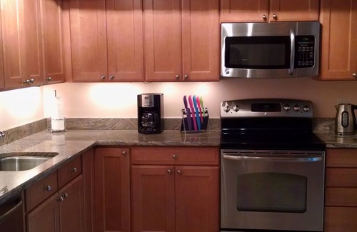 The condo comfortably sleeps 4 with space to entertain. All linens are provided. The modern kitchen is fully equipped. TV and high speed internet is included.